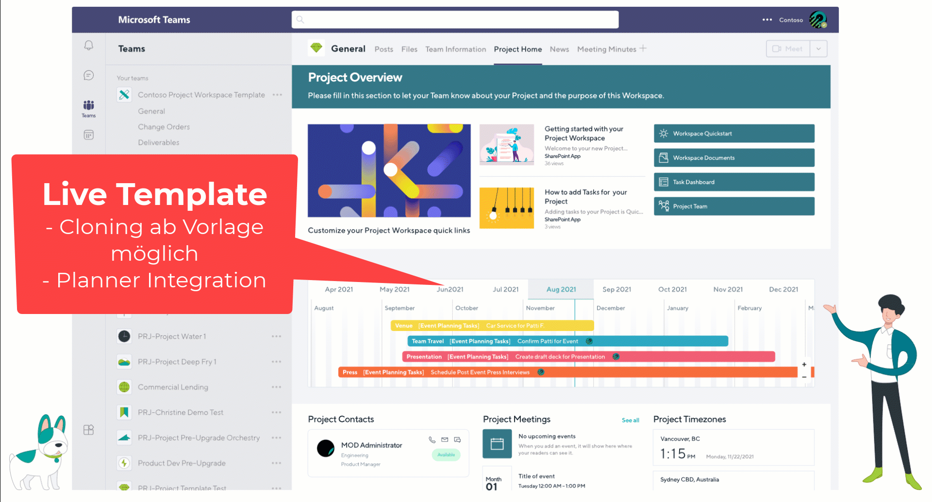 Die Live Template Funktionalität unterstützt auch das intelligente Cloning von bereits existierenden Teams als Vorlage. Dabei werden nach Bedarf Channels, Tabs, Member & Owners, Security Settings, Apps aber auch Planner Tasks und Buckets kopiert.