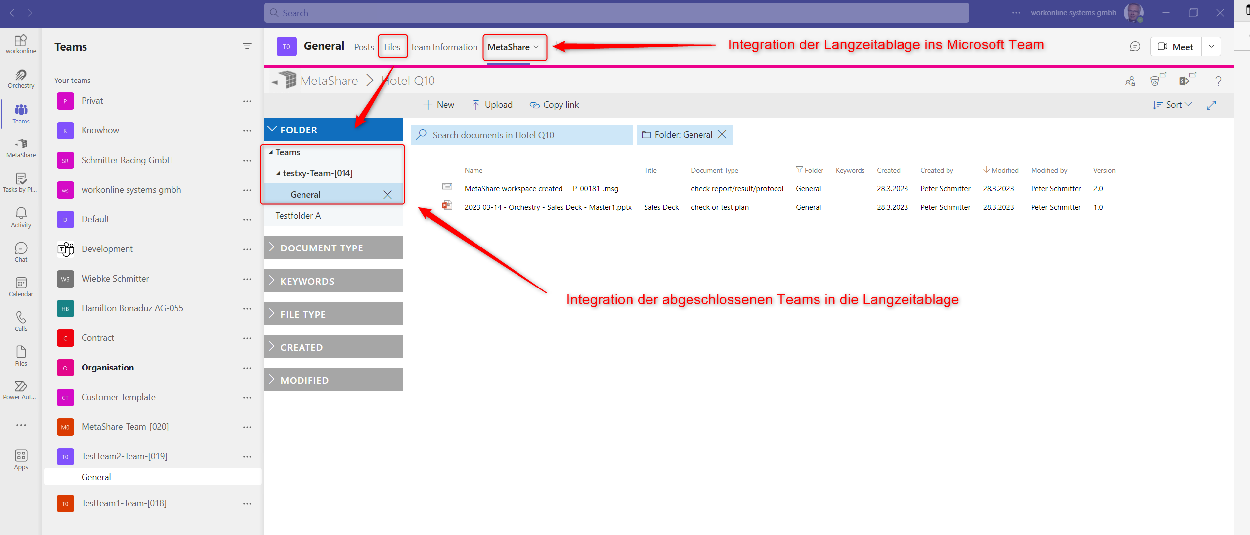 - Integration der Langzeitablage direkt in das Team, um den vollumfänglichen Zugriff vom Team auf die Dokumente der Langzeitablage zu gewährleisten.