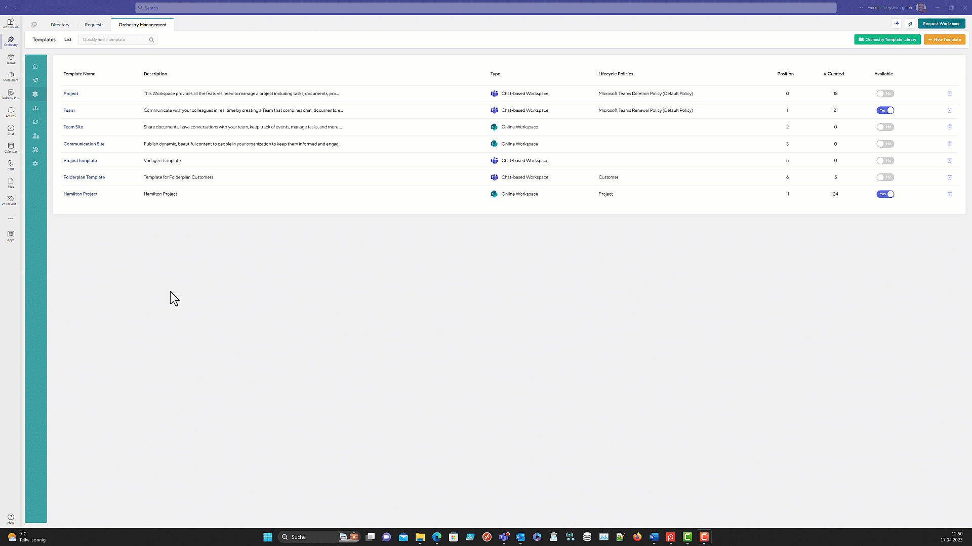 Unter Provisionierung versteht man den eigentlichen automatischen Erstellungsprozess z.B. eines Teams und all seiner benötigten Ressourcen. Dieser Prozess ist im Standardmicrosoft 365 nicht anpassbar. Eine Anpassung dieses Prozesses mit den Spezialwünschen eines Unternehmens muss definierbar sein. Z.B. dynamisches Vorlagenmanagement.