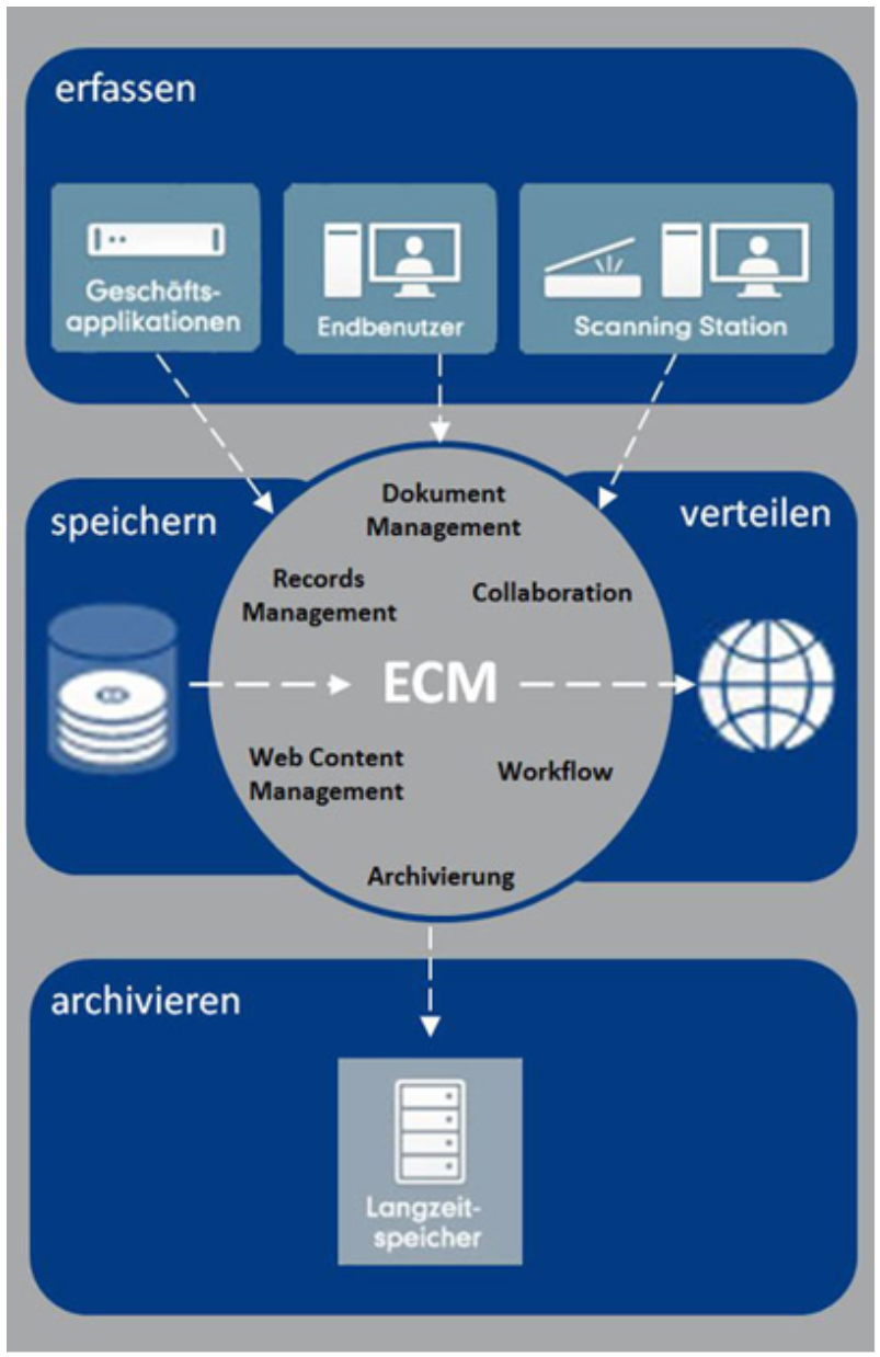 Die Technologie Microsoft 365 kann Geschäftsanwendungen, aber es braucht spezifische Lösungen, welche Microsoft 365 zum Enterprise Content Management (ECM) machen.