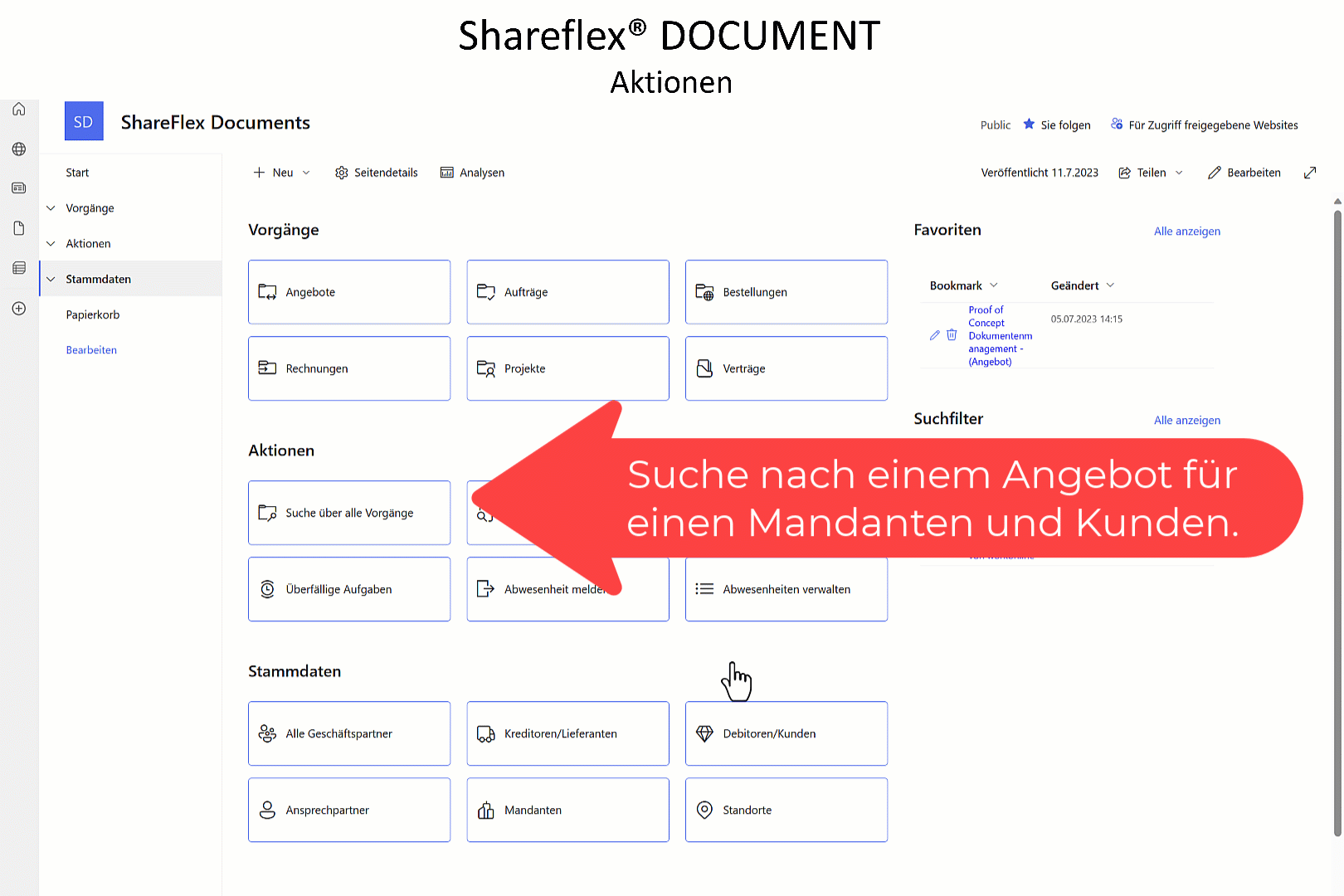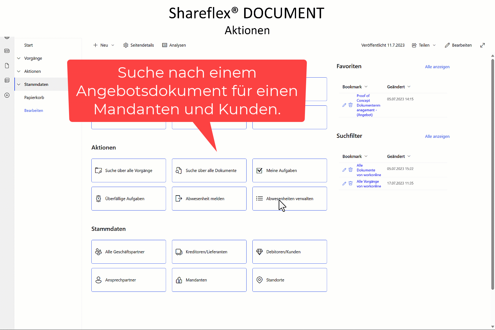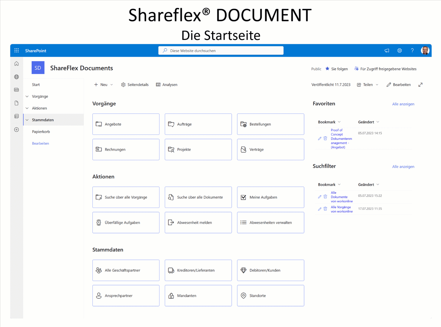 Shareflex DOCUMENTS bildet im Standard folgende Geschäftsprozesse ab: