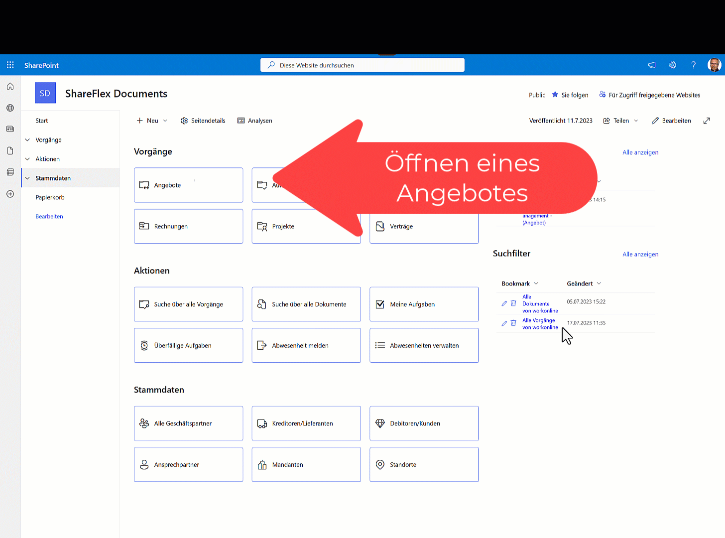 In diesem Video erhalten Sie zunächst einen allgemeinen Überblick über Shareflex Documents und das Dokumentenmanagement mit Microsoft 365 und SharePoint. Wir stellen Ihnen die wichtigsten Funktionen vor und Sie können sich einen ersten Eindruck von der benutzerfreundlichen Oberfläche der Software machen.